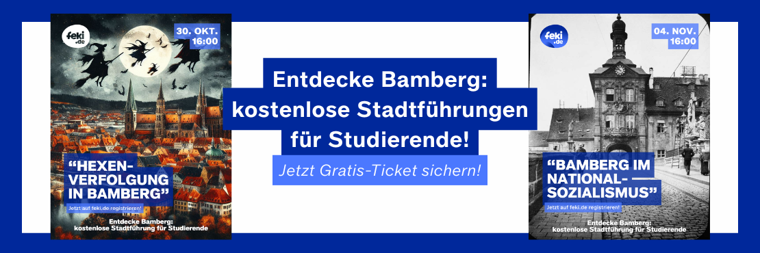 Lust, mehr über Bambergs Geschichte herauszufinden? Nutze die Gelegenheit, bei einer kostenlosen Stadtführung die dunkleren Kapitel der Bamberger Vergangenheit kennenzulernen und gleichzeitig die schönsten Seiten der Stadt zu entdecken. Die Führungen werden vom Verein Geschichte für Alle durchgeführt, es stehen 2 verschiedene Termine mit unterschiedlichen Themen zur Auswahl.